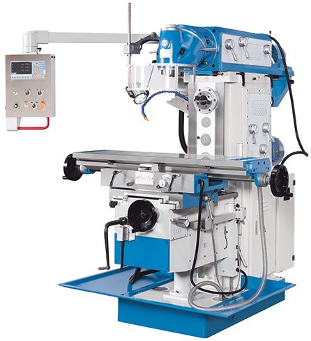 This universal milling machine is one of the top models of the UWF series, which is characterized by a large work area, universal milling head and horizontal spindle. The more powerful drive, the increased speed range and the infinitely variable servomotor feed extend the application range of the UWF 5. Your milling head can be swiveled on two planes and the horizontal spindle has its own drive with a finely graduated gear shift. With its extensive equipment, this model is perfect for repair shops as well as training and production departments.